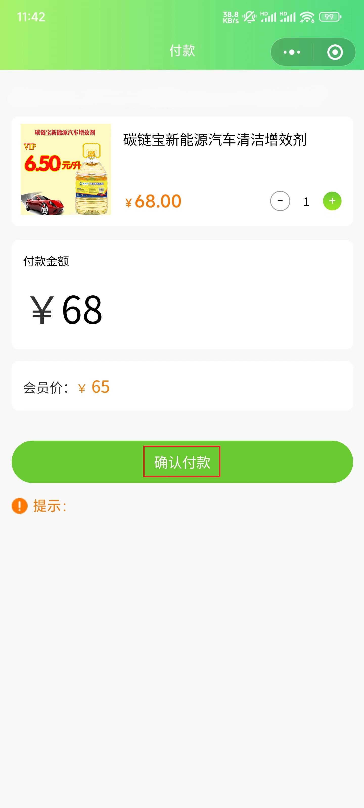 2.选择数量,点击确认付款